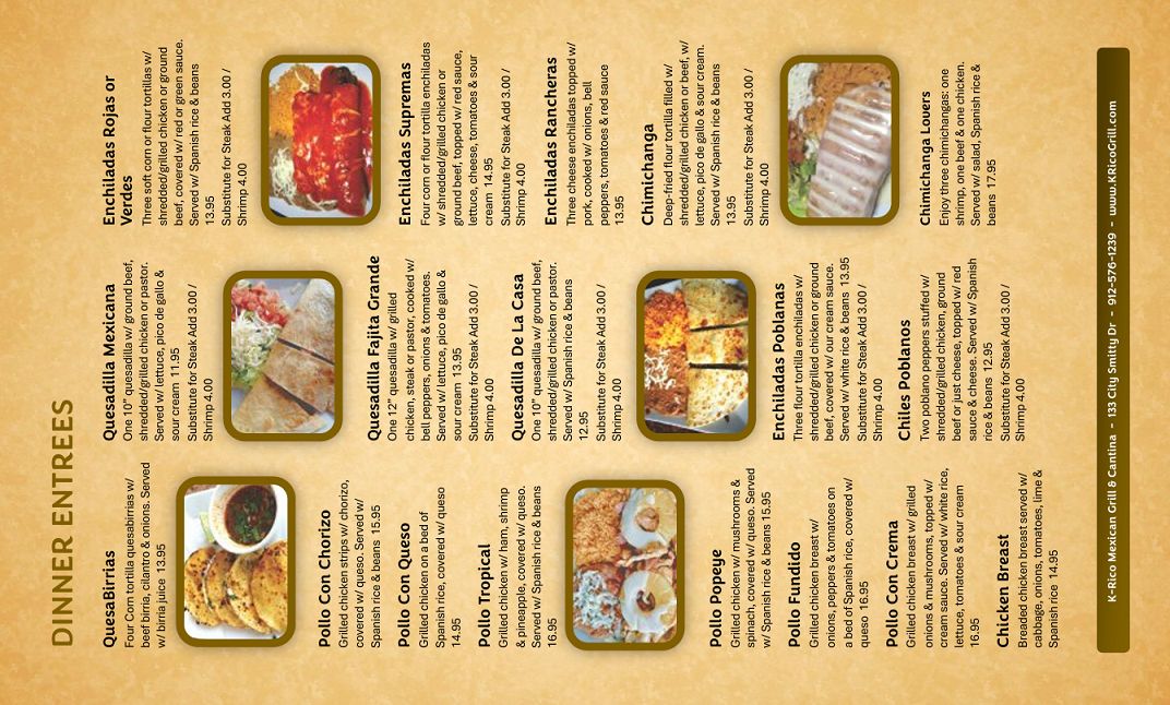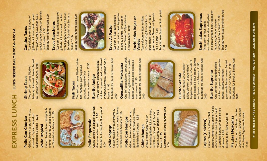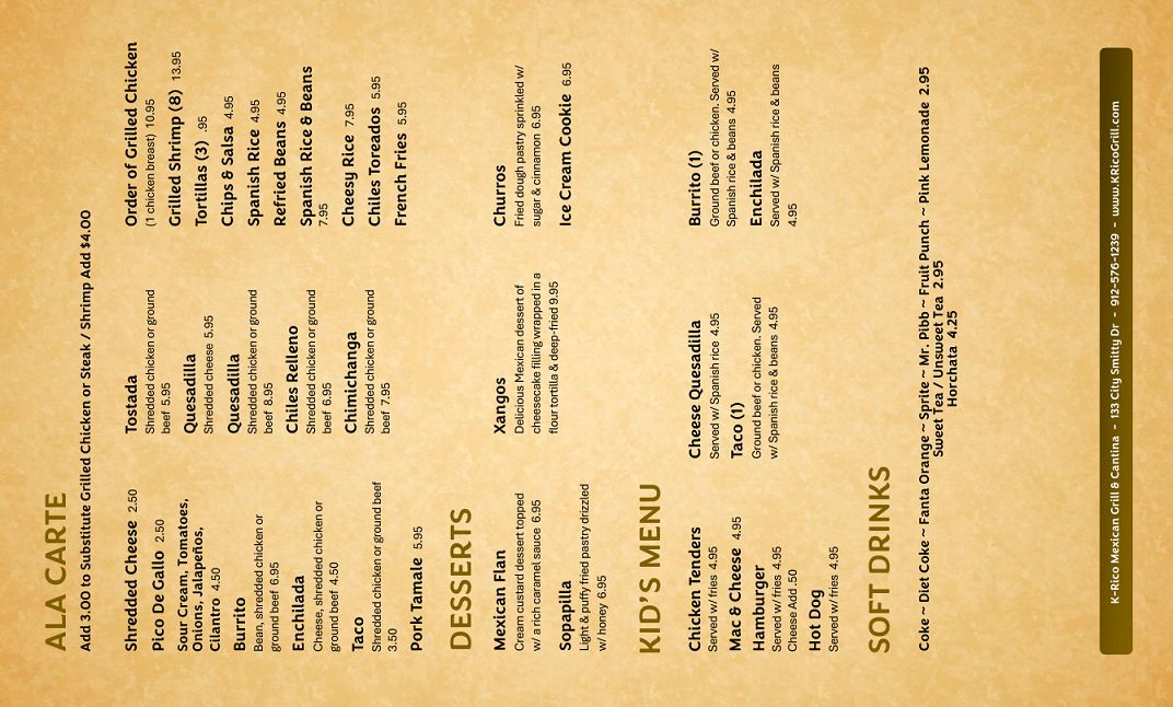 K-Rico Mexican Grill & Cantina Menu